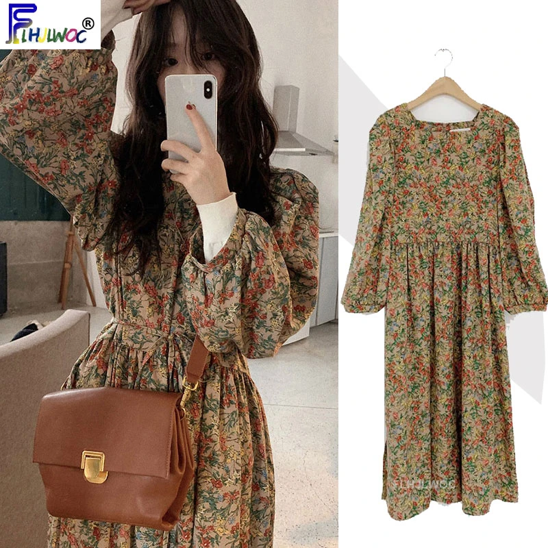 2020 Design Winter Spring Dresses Hot Sales Long Sleeve Cute Date Girls Korea Style Floral Print Temperament Vintage Dress 12011dresses - Aliexpress
